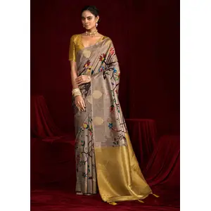 Beige Color Space Silk Fabric Ethnic...
