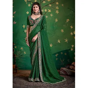 Green Color Soft Silk Fabric Graceful...