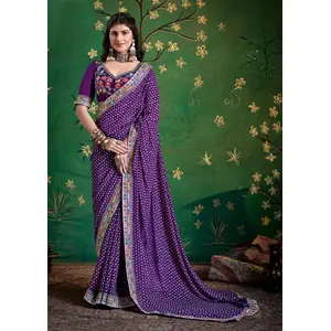 Purple Color Organza Fabric Ethnic...