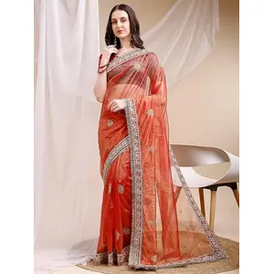 Rust Color Soft Silk Fabric Graceful...