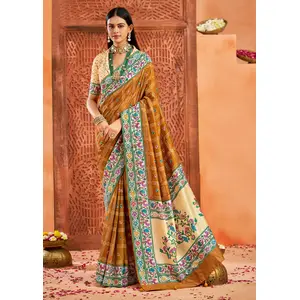 Mustard Color Velvet Tussar Silk...