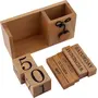 BIJNOR - METAL INLAY IN WOOD Handmade Wooden Desk Organizer Wooden Date Calendar Deck Calendar with Pen Stand Set Pen Stand Business Card Holder with Wooden Calendar for Office Table Accessories