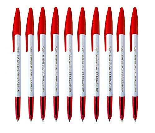 1 X Set of 10 Reynolds 045 fine carbure Non smudge ball Point pens RED