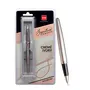 The Cello Signature Creme Ivory Roller Pen is meant for an ultra-smooth writing experience This metal pen exudes elegance with its satin nickel finish and gold clip The roller pen has a magnetic cap system A roller pen that features a 0.7 mm fine tip for fine writing This premium pen is a perfect gift for working professionals and your loved ones