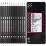 INOVERA 12 Set Professional Drawing Art Sketch Graphite Pencils With Metal Case 2H, H, F, HB, B, 2B, 3B, 4B, 5B, 6B, 7B, 8B, Black (Pack of 1-12 Pencils)