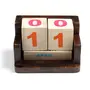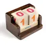 PACKAGE CONTENTS: A brown wooden holder with 5 wooden blocks; 2 with numbers for Dates & 3 for Months; DIMENSIONS: 2.5 in X 2 in X 1.75 in