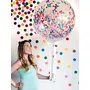 The balloons that are shown in the picture are transparent . The ones received are milky white. The confetti is barely visible.
