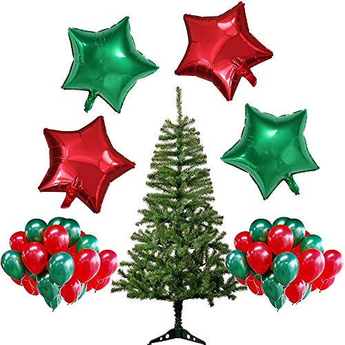 • 2 Feet Artificial Xmas Tree/Christmas Tree with 4 Pcs Red Green Star Foil Balloon and 5 Pcs Red Green Latex Balloons Merry / X mass Christmas New Year Party