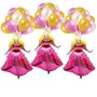Masti Zone 3 Pcs Cartoon Character Princess Foil Balloons with 60 Pink White Golden Balloons