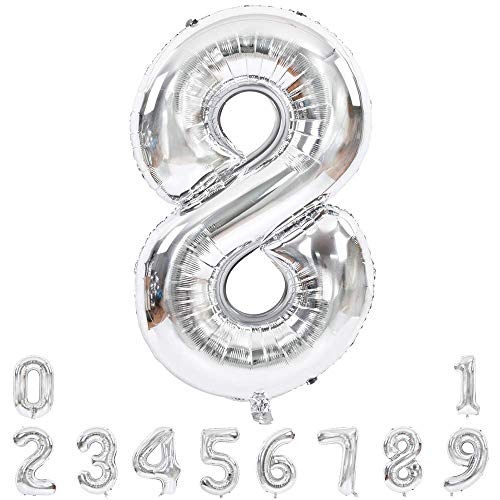 Color:32" Silver-8|Size:32 inchAluminum Foil Letters: 1pc/pack Color: Silver optional Size : 32inch/pcs Package : 1 letter/number(32inch) ¡Plastic straw x 1pc (5.7 inch) Tip : All Aluminum Foil Balloons are detected by the machines If air leak occurs while inflating please press the inflatable hole or use tape to assist the automatic sealing of the balloon. Perfect for many Occasions celebration: Brthday Party Weeding Anniversary Graduation Bridal Shower New Year Eve Big events School class parties Business celebrations and Other Party Occasions you want to celebrate. Match different Numbers to get different numbers you want. Mix color to meet personal type.