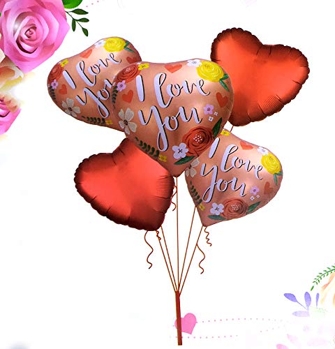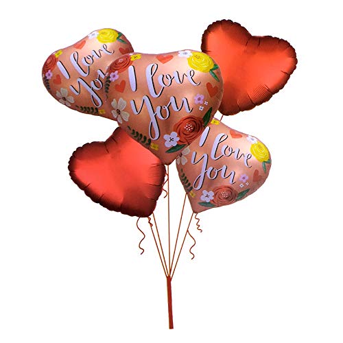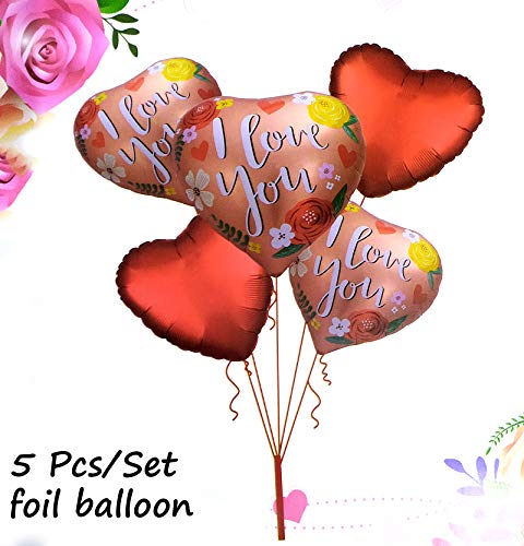 5 Piece Balloons Golden Red Foil Balloons Confetti Balloons and hert Foil Balloons Brthday Party Dec