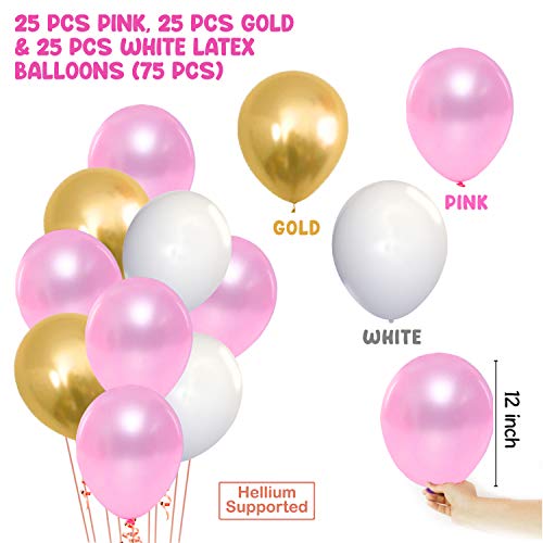 91Pcs Bride to Be Bachelorette Party Decorations Set|Sash Miss to Mrs Banner Pink-White-Golden Balloons and Printed Latex Balloons Combo for Bridal Shower Decoration