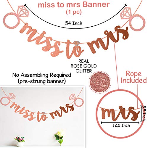 Miss to mrs banner is a pre strung banner. Rose Gold Glittery miss to mrs Banner: High quality ECO-friendly paperEach letter length approx is 5.5". Total banner length is 54"