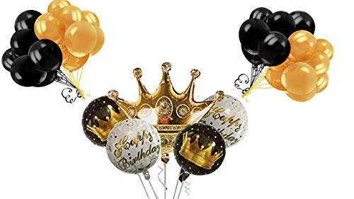 Balloonistics Golden Happy Brthday Foil Balloons + 50 Black and Golden Metallic Balloons for Brthdays and Room Decor