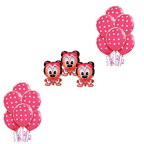 Size:Pack of (6+50) | Color:Minnie mouse + pink polka6pcs Minnie mouse Long Lasting Fine Finish Foil & 50 Pcs Pink Polka Dot Balloons