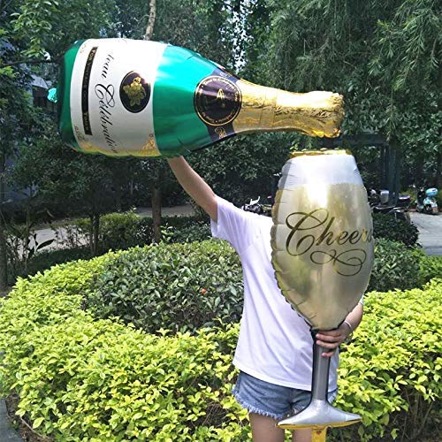 Champagne Wine Glass and Champagne Bottle Shaped Balloons for Party Decorations 32 Inch Each (Pack of 2)