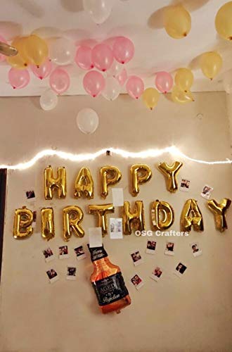 OSG Crafters Happy Birthday Letter Foil Balloon Set of (Gold) + Pack of 150 HD Metallic Balloons (Gold ,White and Pink)