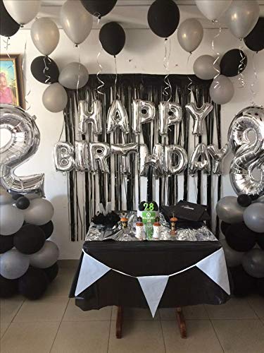 Happy Brthday Silver Decoration SetPackage Contains: Happy Brthday Foil Balloon Set-Set of 13 Letters 60 HD Metallic Balloons in Silver and Black Colors 1 Straw NON-TOXIC & SAFE:100% Natural Balloons Have Been Rigorously Tested High Quality Biodegradable Latex That is Safe to be Used around b or Toddler With Very Little To No Smells & Will not deflate overnight. TIPS & USED FOR : Strong Durable Brthday Party Favors1st Brthday of your Kid18th Brthday21ST Brthday30th Brthday 50th Brthday of your Parents or 75th Brthday of your Grandparents.