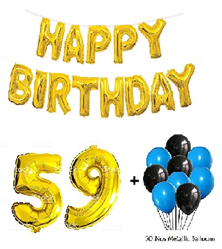 Number 59 Gold Foil Balloon & Happy Brthday Banner