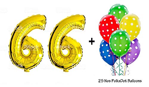Number 66 Gold Foil Balloon and Polka Dot Latex Balloon