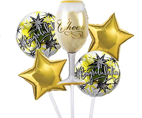 Style Name:Congratulation with GlassNote: Package Contains Congratulation Foil Balloon 5PCS Bouquet Set. Every care has been taken to ensure that the product details are correct. All dimensions are measured by hand so there might be a very slight variation. Whilst the image is a true representation of the standard product slight variation in color replication may occur due to lighting/flash during photography or your monitor settings.