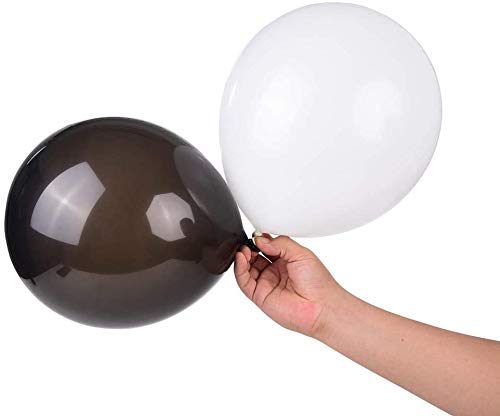 Party Balloons Helium Balloons Pure Black/White Color Latex Balloons for Brthday Wedding Anniversary Festival Home Decoration with 2 ribboons (1 Black1 White) (Pack of 25)