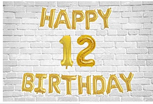 Edition:Number 12Happy Brthday alphabet letter foil balloon with number foil balloon. Best balloons for Brthday decoration. Best Brthday decoration item for boys and girls. Package contains gold color 16 inches happy Brthday alphabet balloons 16 inches number balloon and straw to blow the foil balloon use the plastic straw inflate the gass slowly until 90% filled and keep away from fire when the inflation is completed the balloon comes automatically sealing glue! hang happy Brthday letters on wall window ceiling or in courtyard it is very easy to decorate your Brthday party. After party please use plastic straw to export the air for reuse.