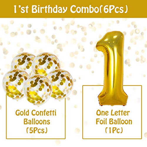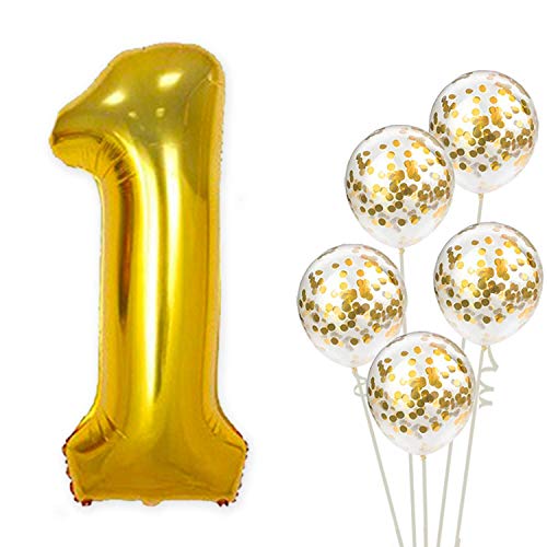 Color:gold | Size:Set of 6It is perfect for the decoration of 1st Brthday party. Package has One 1 number golden foil balloons with 5 Pic of Golden confetti balloons in one pack. Total set of 6 for beautiful decoration