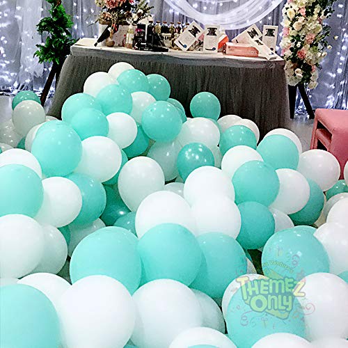 Themez Only P0348 Pastel Color Balloons for Decoration - Pack of 50 pcs (Aqua and White)