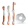 LuvLap Baby Training Toothbrush Set with Anti Choking Shield Teeth Tongue Cleaner Baby Oral Hygiene 3 pcs (White/Orange)Lifes little stories bloom with coming of the little one in your life. It completes your life with many joys of parenthood. For baby its the next best thing to being in your arms. Entertain your little one and give him or her a personal resting place. Luvlaps high chairs cots walkers and other indoor products will have the whole household floored by babys happy smiles and chuckles. At Luvlap we endeavour to weave the little stories into our products with an emphasis on child safety and enrichment of features. So that your little one gets the comfort thats next only to the warmth of your lap. Conceived with care and made using the latest marvels of science all Luvlap products undergo multiple quality checks before they are dispatched to the stores. The products are available at all leading baby gear and online stores and conform to the european standards.LuvLap Bunny Food & fruit nibblerFruit nibbler and teething toy to provide gentle relief to gums. Serves dual purpose of feeding fruit and vegetables to babies and can also be used as a teether. Can be filled with chilled fruits/vegetables to provide added relief. Made with bpa free food grade plastic and soft silicone it comes in attractive handle designs to EN gage the baby and is easy to hold and nibble upon.