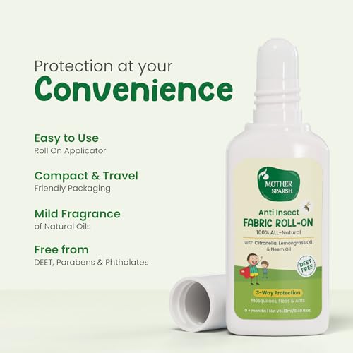 HomeBabyBaby Health CareMosquito RepellentsMother Sparsh Natural Mosquito Repellent Fabric Roll-on for Babies, 3-Way Protection from Mosquitoes, Fleas and Ants (12ml, Pack of 2)