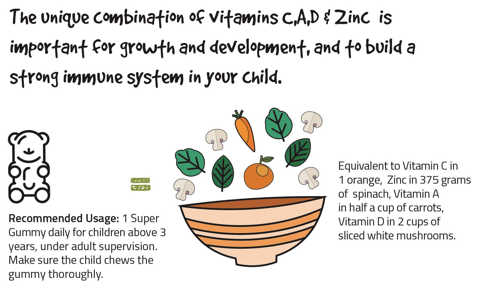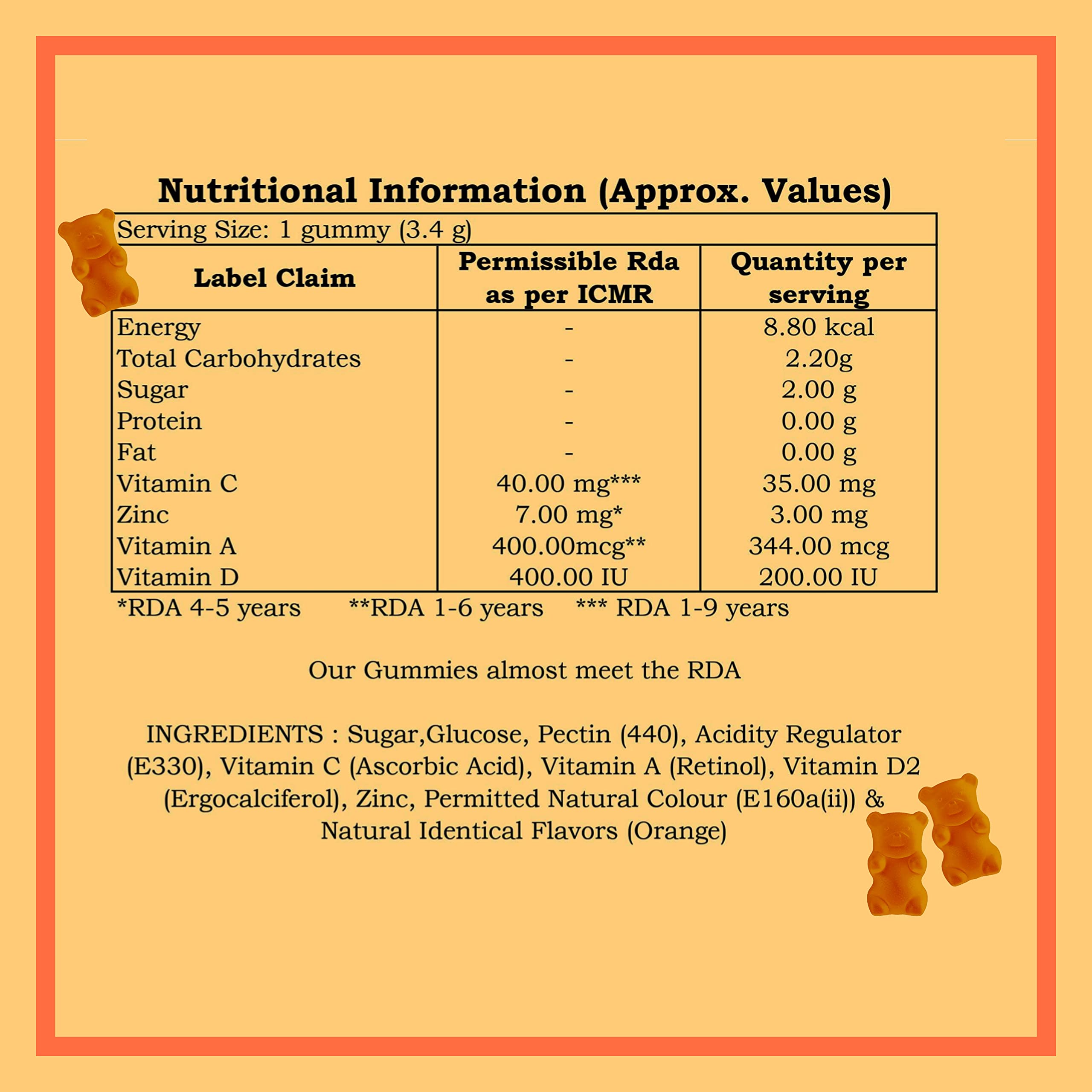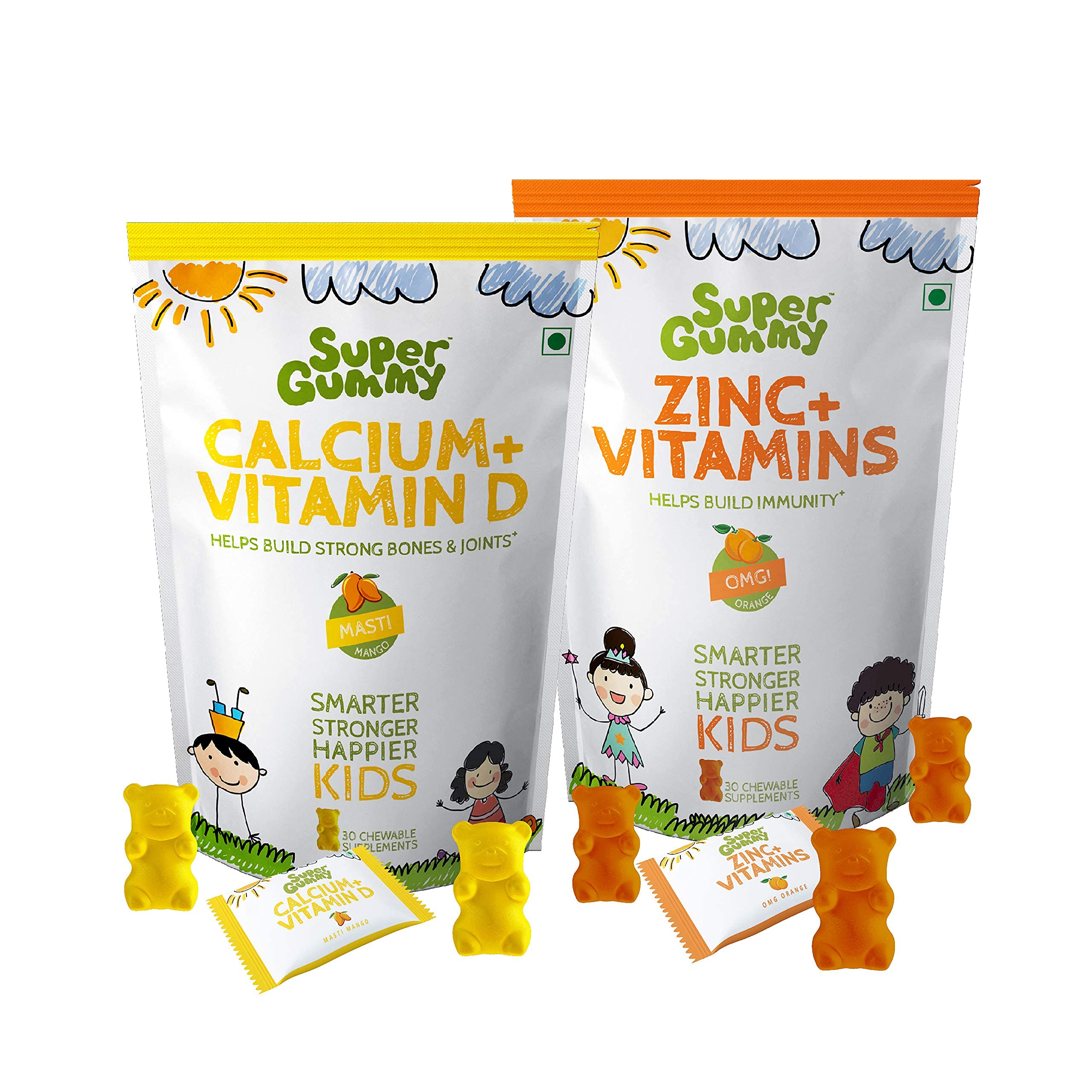 Super Gummy Zinc & Calcium Gummies for Kids Immunity Boost & Strong Bones (Combo 2 Pack 30 Chewable Gummy Bears Per Pack)