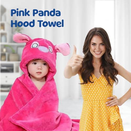 Bumtum Baby Soft Cotton Hooded Bath Towel | Ultra Absorbent | For Newborn, Infant Boys and Girls (Pink Panda)
