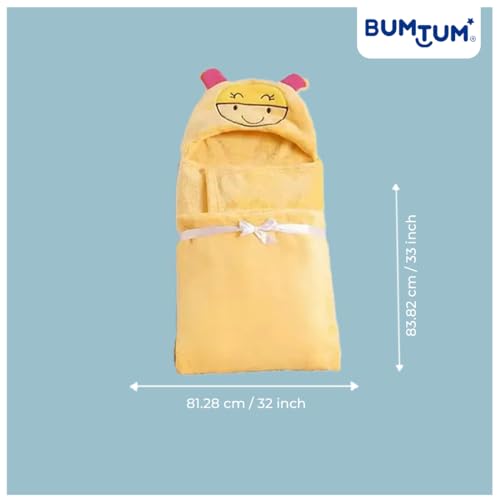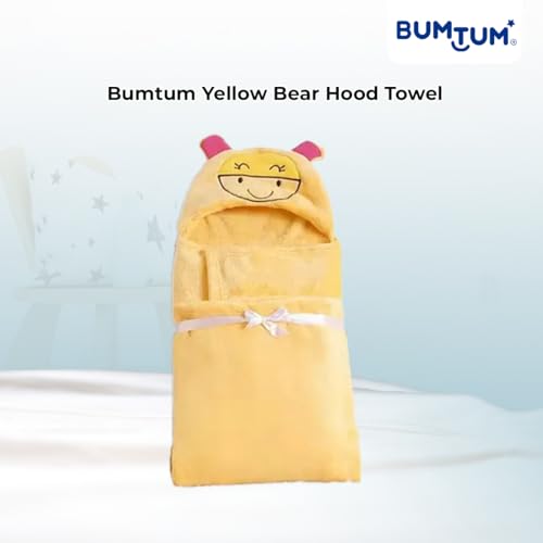 Bumtum Baby Soft Cotton Hooded Bath Towel | Ultra Absorbent | for Newborn Infant Boys and Girls (Yellow) - 1 Count