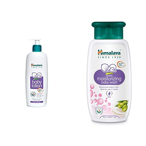 Himalaya Baby Lotion (400ml)Gentle Daily Care Lotion Himalaya baby lotion is formulated from natural ingredients to keep your baby's skin soft and protected. Dermatologically tested it is gentle and safe for use on new born baby skin as well. Effective for dry and scaly skin this Himalaya herbals body lotion moisturizes and nourishes your young one's skin with its daily use. Apply and massage it gently on your baby's body and enjoy this beautiful bonding moment with your baby that's sure to last forever. Free from harsh chemicals this mild baby lotion has soothing properties to keep your infant's skin cool and lustrous. Protect baby's tender and sensitive skin with this soft and smooth Himalaya herbals baby lotion and feel the difference. Nature's Care for Your Little One Infused with the essence of Olive oil Almond oil and Licorice this baby lotion from Himalaya herbals has antimicrobial properties that protects your child from multiple infections. Vitamin E enriched Olive oil nourishes the skin and prevents any outbursts while Almond oil a rich source of Vitamin A softens the skin tone and is highly effective against infections. It also contributes to overall growth and bone development of your child. Licorice is yet another anti-inflammatory and anti-germicidal herb that keeps your baby's skin cool and relieves it from itching swelling and redness efficaciously. Buy this Himalaya baby lotion 400ml pack online and pamper your baby with its natural goodness for a healthy moisturized soft and supple skin. Weight: 400 ml Contents: Olive oil Almond oil Licorice and other natural ingredients Effective for: Dry and scaly skin Itchiness Rashes and SwellingHimalaya Baby Care Extra Moisturizing Baby Wash 200mlHimalaya Extra Moisturizing Baby Wash is designed to effectively cleanse baby's skin and make it softer and smoother. Formulated with the goodness of Indian Aloe Almond Oil and Olive Oil which are well-known moisturizers to help prevent post-bath dryness. Also contains Milk which is known to soften and improve the skin's texture.