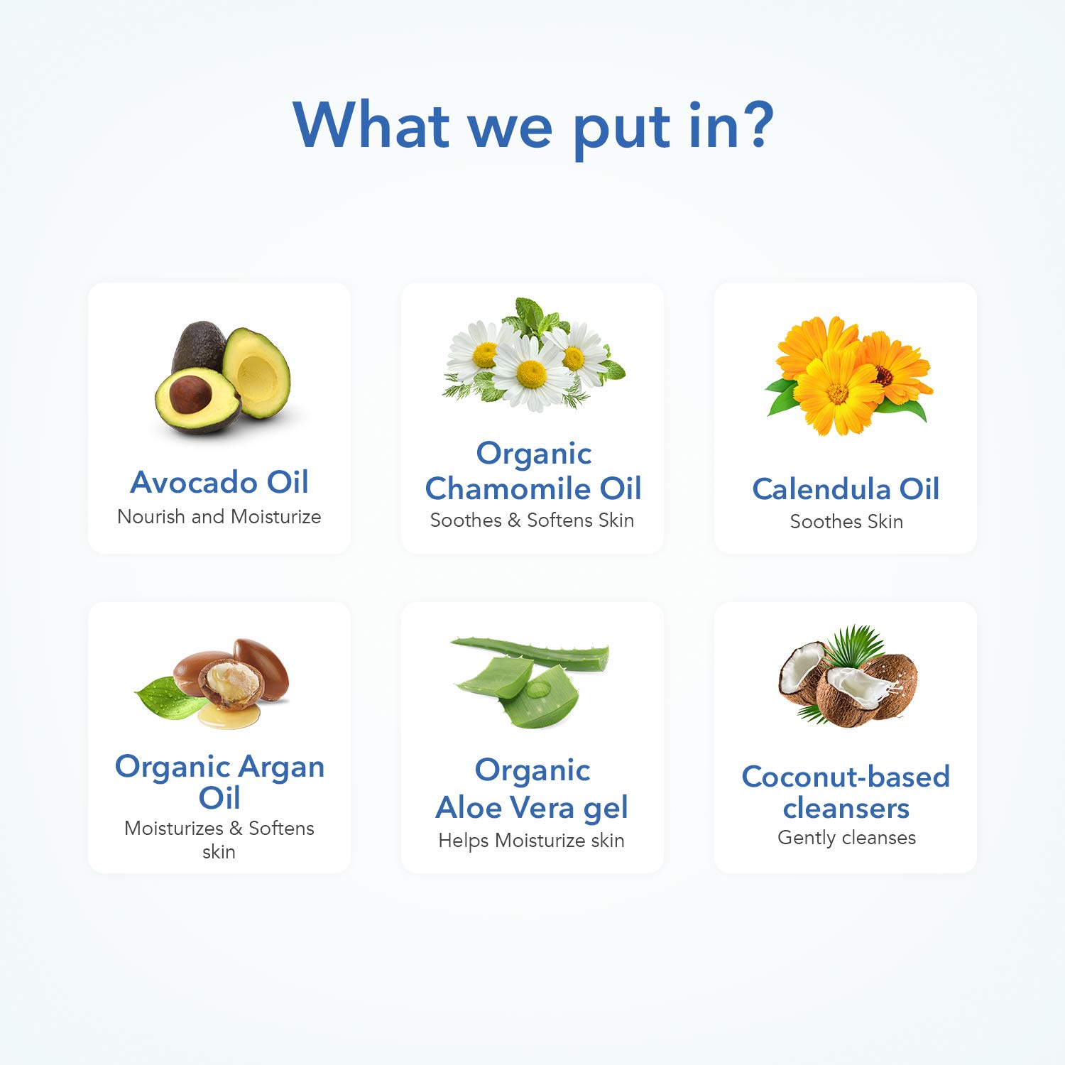 The Moms Co. Tear-Free Natural Baby Body Wash with Calendula Avocado Oils and USDA-Certified Organic Oils Like Argan Chamomile (400 ml)Our natural baby wash is a toxin-free combination of coconut based mild cleansers that gently clean while oils like avocado organic chamomile and organic aloe vera gel help soften and soothe your baby's delicate skin. The Moms Co Natural baby wash is a clinically- tested and tear-free baby wash that works great as a top to toe wash for babies or toddlers with little hair.The Moms Co. All Natural Tear-Free Cleaning Bundle for Baby with Tear-Free Natural Baby Wash (200ml) and Baby Shampoo (200ml)Natural tear-free baby wash and shampoo soften and soothe baby's delicate skin and scape with their toxin-free combination of coconut based mild cleansers that gently clean while oils like avocado usda-certified organic chamomile and organic aloe vera gel soothe and moisturise. Protect your baby the natural way with the moms company baby care products India's only all-natural Australia-certified toxin-free baby care range with usda certified organic actives. ? What's in: ? Avocado oil to nourish and moisturize with its high content of fatty acids and vitamins a d and e ? Organic chamomile oil and calendula oil for their skin soothing properties ? Organic argan oil and organic aloe vera gel to moisturize and soften skin ? Coconut-based cleansers that gently clean? What's out: our sulphate and paraben free baby wash is made without sls sles dea/tea phenoxyethanol synthetic fragrances pegs and many other potentially harmful chemicals ? Safe for: baby from 0 months ? Certified toxin free and made safe by safe cosmetics Australia ? Australia allergy certified ? Dermatologically tested.