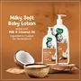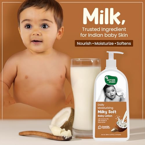Daily Moisturizing Milky Body Lotion for Baby is a nourishing blend of milk protein coconut oil and shea Butter. It Gently nourishes the babys skin with a pH- neutral formula. The non-sticky texture of Milky Soft Body Lotion for Baby keeps delicate skin soft and supple. Its 24-hour hydration makes it essential in the daily routine of babies. This kid's Body Lotion is free from harmful chemicals making it a safe choice to pamper your babys Skin.