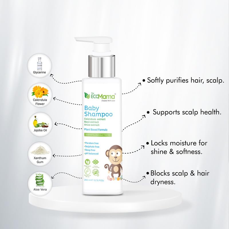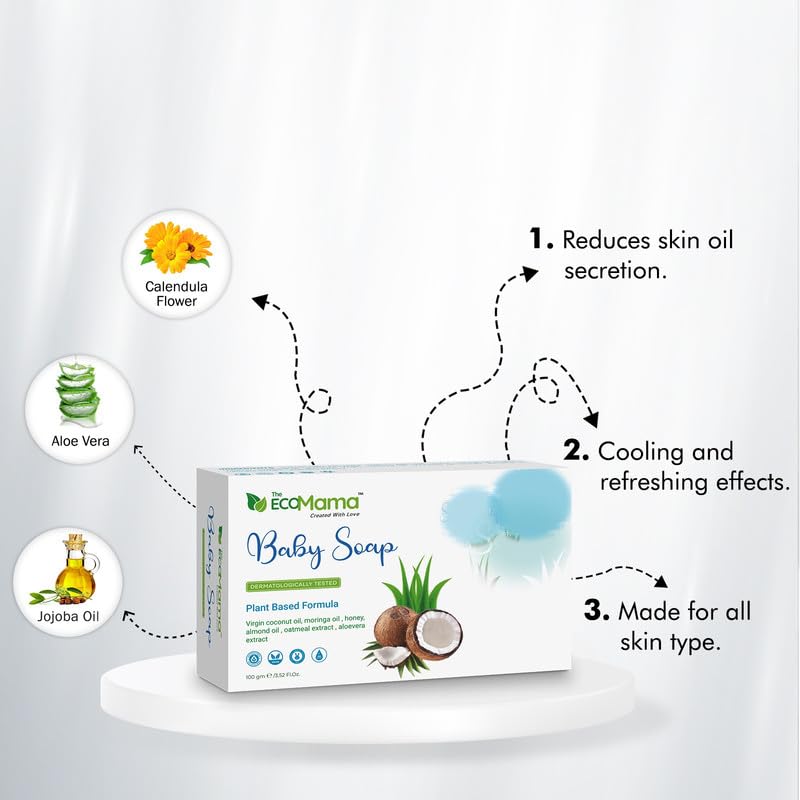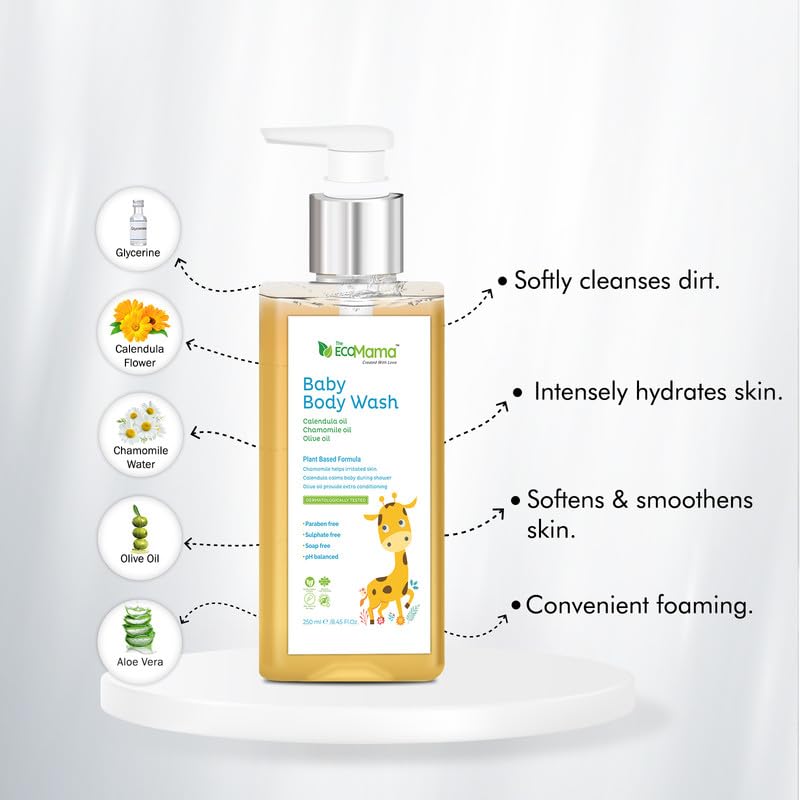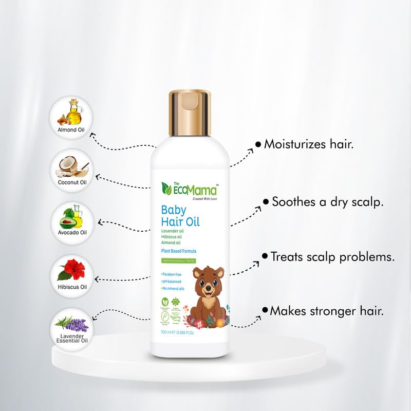 The Eco Mama 5-In-1 Essential Baby Skin & Hair Care Combo Kit (Large) For New Born Babies & Kids|With Tear Baby Shampoo (200Ml) Soap (100Gm) Body Lotion (200Ml) Body Wash (250Ml) Hair Oil (100Ml)
