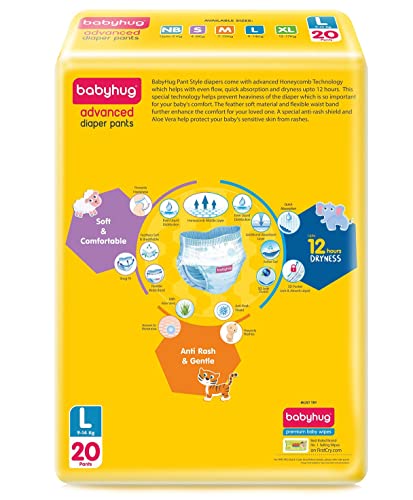Babyhug Advanced Pant Style Diapers, Large, 20 Pieces (Pack of 20)