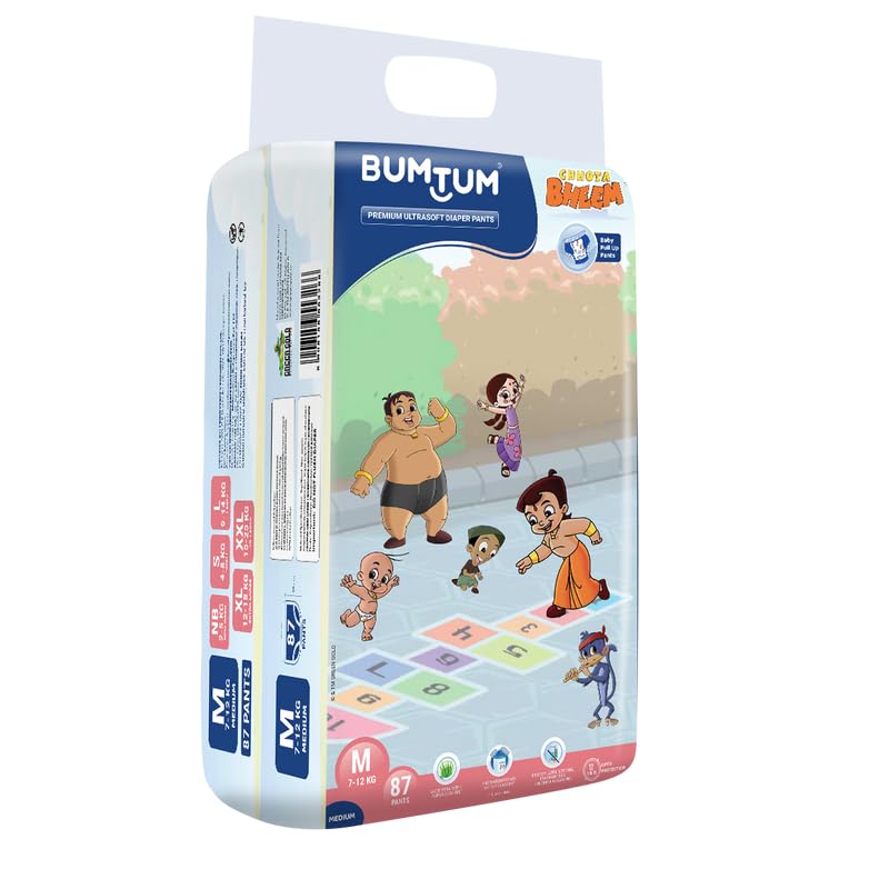 Bumtum Chota Bheem Medium/M Size Baby Diaper Pants 87 Count Leakage Protection Infused With Aloe Vera Cottony Soft High Absorb Technology