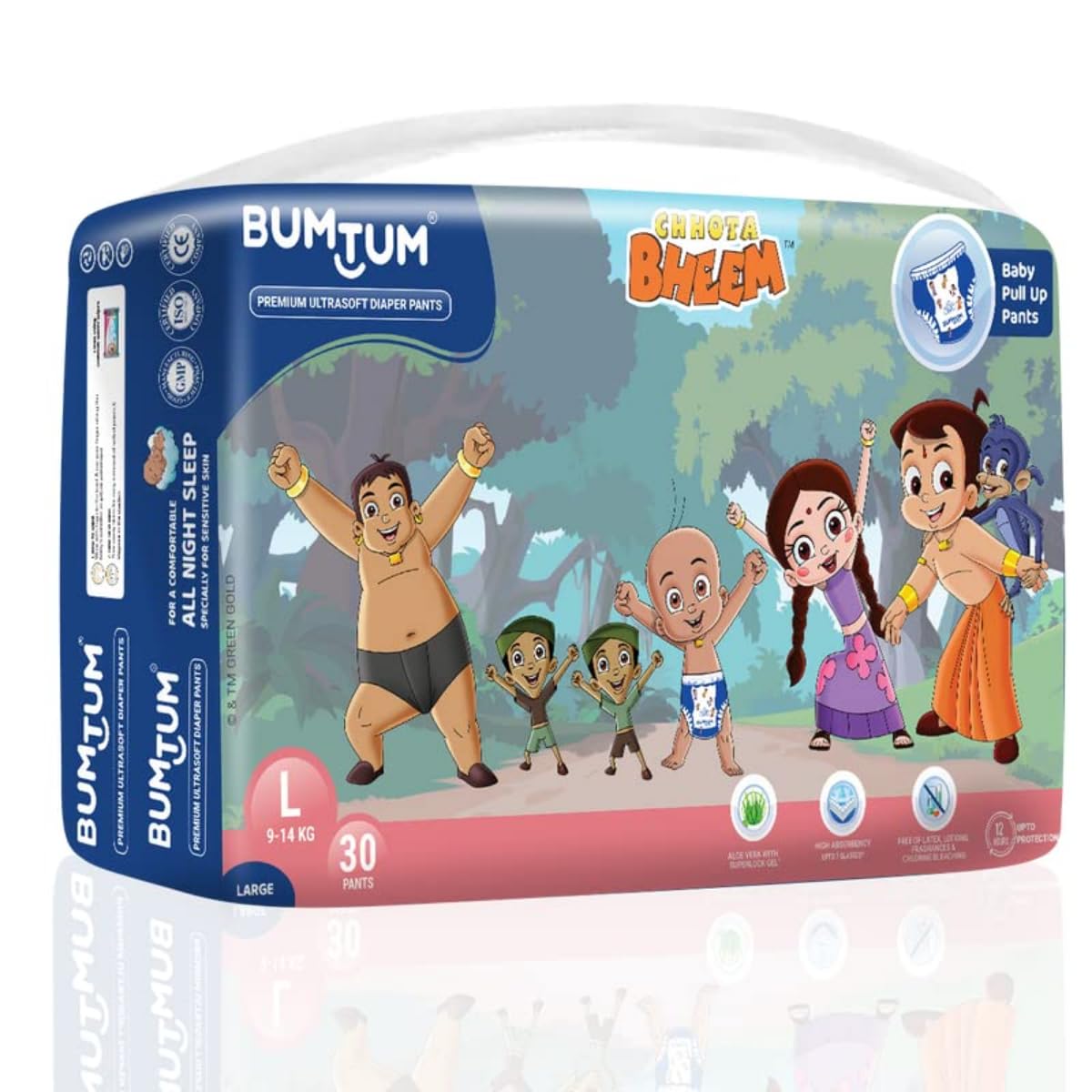 BUMTUM PANT-STYLE DIAPERS: are uniquely curated to keep your baby's day & night full of comfort and materialized with cottony soft breathable and non-woven material that ensures a cosy experience.