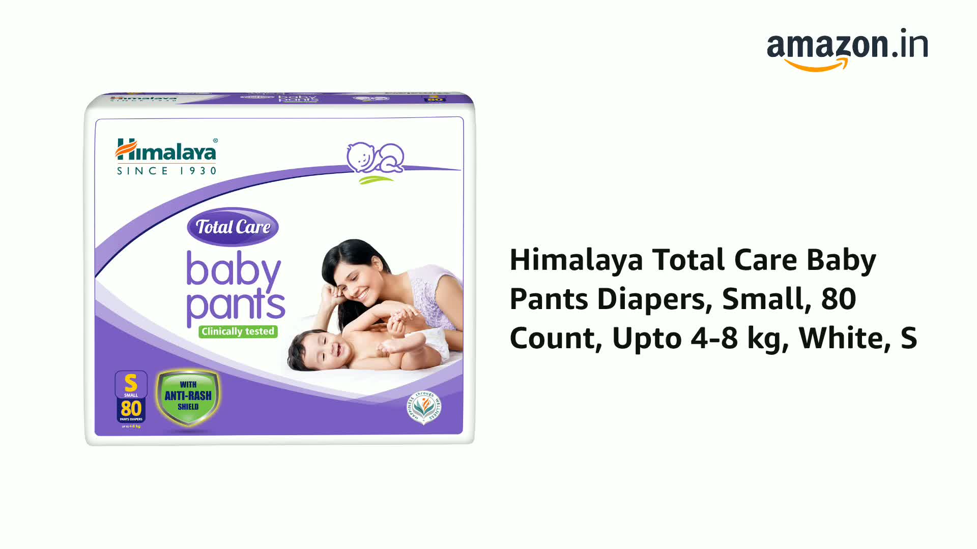Himalaya Total Care Baby Pants Diapers, Small, 80 Count, Upto 4-8 kg, White, S