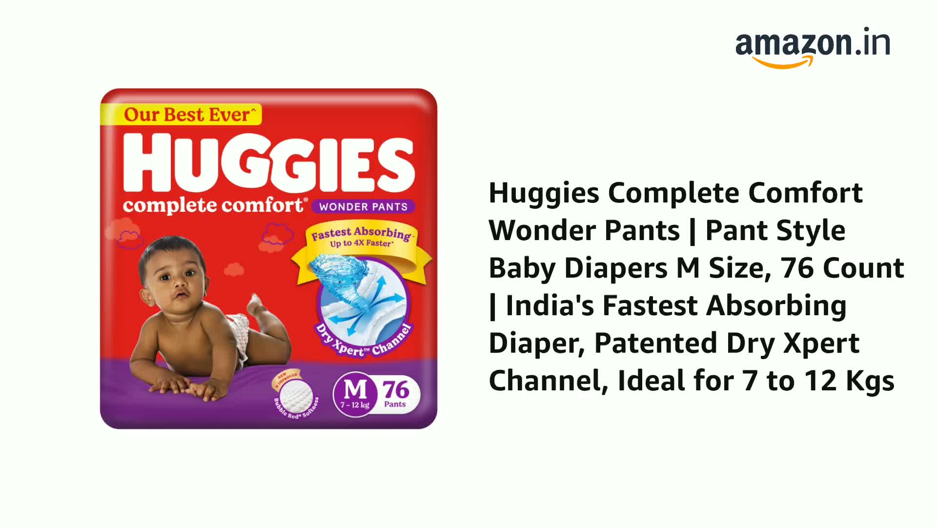 New & Improved Huggies Complete ComfortTM Wonder Pants is India's Fastest Absorbing diaper*. Our best ever^ Diaper Pants absorb upto 4x faster~ now with Dry XpertTM X shaped channel which helps to distribute the urine quickly and evenly to keep your baby dry and comfy. With India's 1st Diaper Pants with Bubble Bed technology Huggies provides a soft inner bubble layer that wraps your baby in softness. Made from air friendly material our diaper pants help your baby's skin to breathe#. Up to 12 Hours of Overnight Absorption@ allows you and your baby to have a comfortable sleep. Double leak guard provides extra padding to fight leakage. Our Pant style diapers are available in all sizes from Newborn/XS S M L XL XXL and XXXL sizes.
