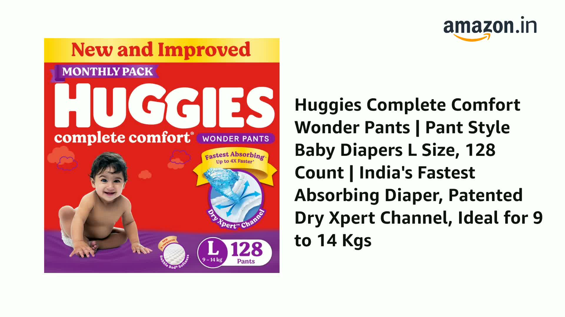 Introducing the New and Improved Huggies Complete Comfort Wonder Pants - India's Fastest Absorbing Diaper. Designed to provide maximum comfort and absorbency for your little one these are our best ever diaper pants. With our patented Dry Xpert technology that spreads urine evenly across the diaper - these diaper pants are now up to 4x Faster in absorbing urine ensuring your baby stays dry and comfortable. But that's not all! Our diaper pants also feature India's 1st Bubble Bed technology that provides a soft inner bubble layer to wrap your baby in ultimate softness. Made from air-friendly breathable material these pants help your baby's skin breathe keeping them comfortable throughout the day protecting them from rashes. And with up to 12 hours of overnight absorption you can both have a peaceful night's sleep. We understand how important it is to keep your baby dry at all times which is why our diaper pants come with double leak guard protection. This extra padding helps prevent thigh leakage ensuring there are no messes to deal with. Choose from a range of sizes of our Pant Style Diapers - including diapers New born /XS size diapers S size (small) diapers M size (medium) diapers L size (large) diapers XL size (extra large) diapers XXL size (double extra large) and diapers XXXL size (triple extra large) - making it suitable for babies of all ages and sizes. Trust Huggies Complete Comfort Wonder Pants for complete care and protection for your little one. Add the new and improved Huggies Complete Comfort Wonder Pants to your shopping cart today! Available on Amazon.