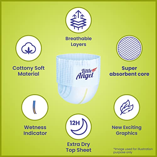 Little Angel Extra Dry Pants the perfect solution for keeping your little one's skin dry and comfortable all day long. These innovative diaper pants are specifically designed for Indian babies with unique features like a wetness indicator that lets you know when it's time for a change. The extra thin core is designed to provide superior absorbency while the ultra-soft air fresh material ensures your baby's delicate skin stays dry and comfortable. The 360-degree soft elastic band provides added protection against diaper rashes and the advanced double leak protection system provides peace of mind for worried parents. With their superior absorbency and comfortable fit Little Angel Extra Dry Pants are the perfect choice for Indian mothers who want the best for their babies. Trust Little Angel to keep your little one dry and happy all day long.