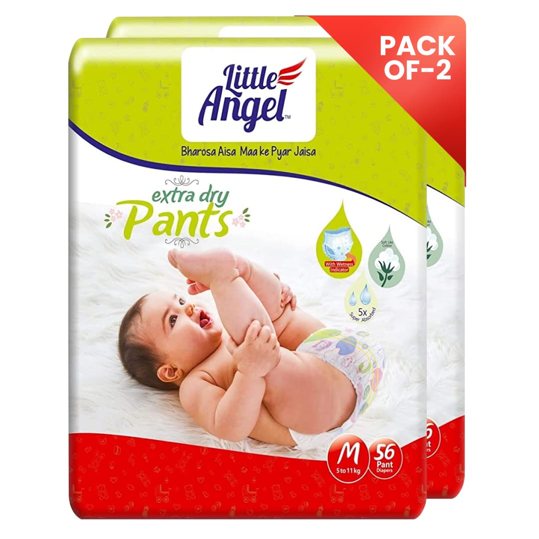 Little Angel Extra Dry Baby Diaper Pants, Medium - 56 Count (Pack of 2)
