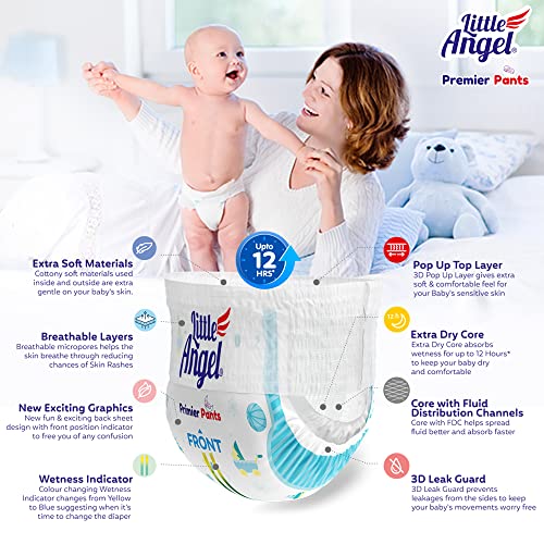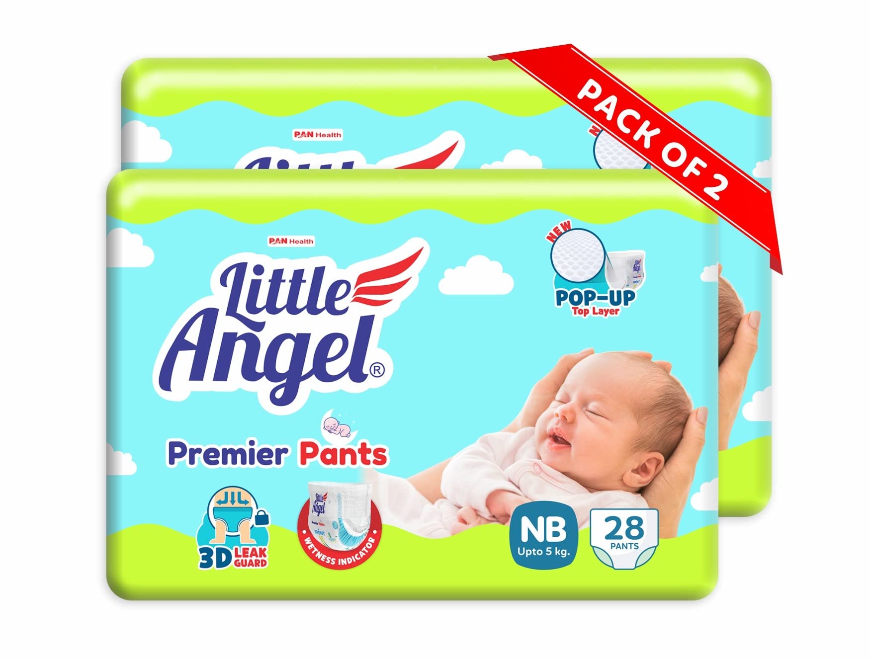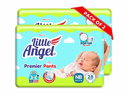 Little Angel Premier Pants Baby Diaper, New Born (NB) Size, 56 Count, Combo Pack of 2, 28 Count/Pack, up to 5 Kg