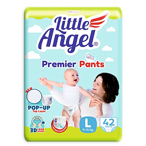 Little Angel Premier Pants Baby Diapers, Large (L) Size, 42 Count with Wetness Indicator, 9-14 Kg
