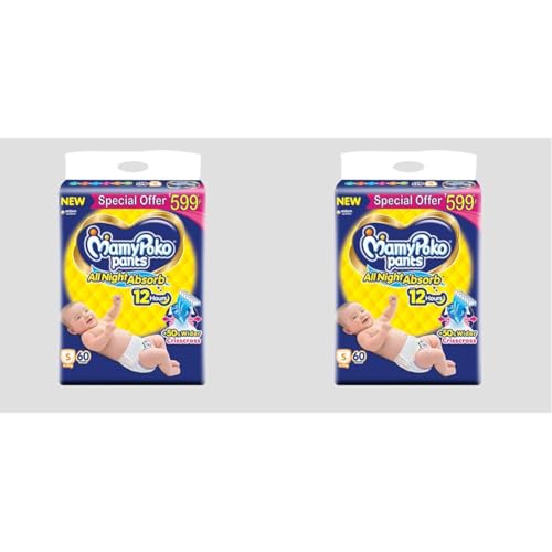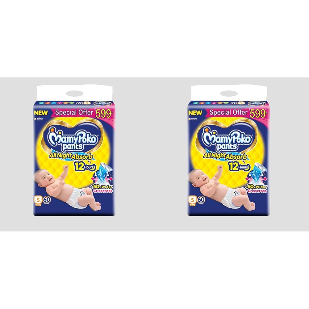 MamyPoko Pants All Night Absorb Baby Diapers, Small (S), 60 Count 4-8 kg (Pack of 2)
