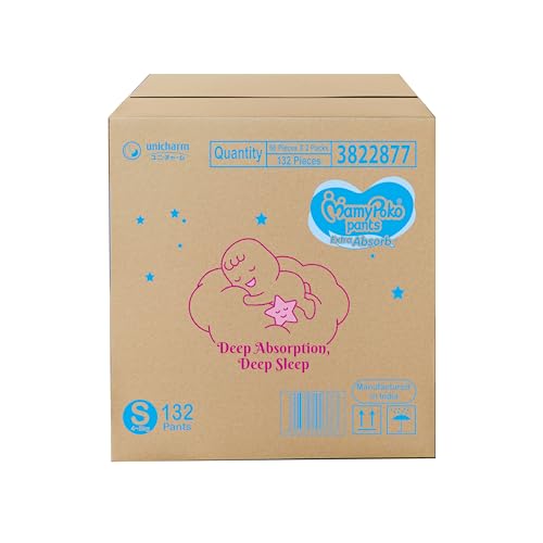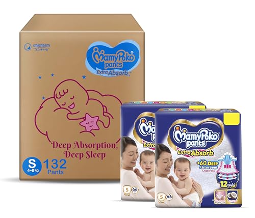 MamyPoko Pants Extra Absorb Baby Diapers, Small (S size) | 4-8 kg | 132 Count |Deep Sleep Diapers| Soft gentle fit |Deep Absorbent Crisscross | skin friendly with coconut oil |